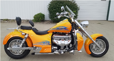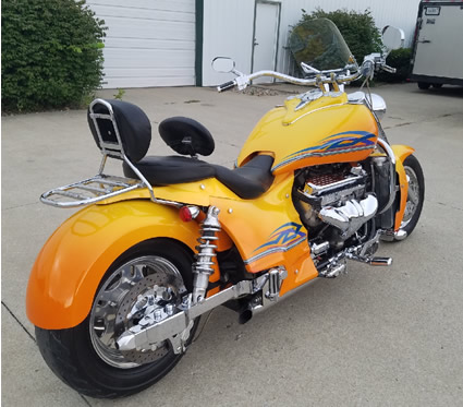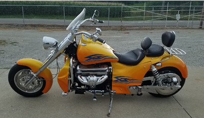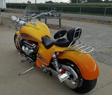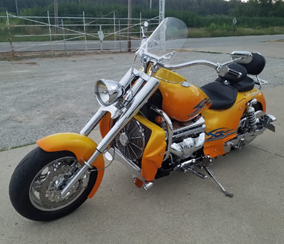 Custom Candy Yellow metallic orange fade with blue silver graphics